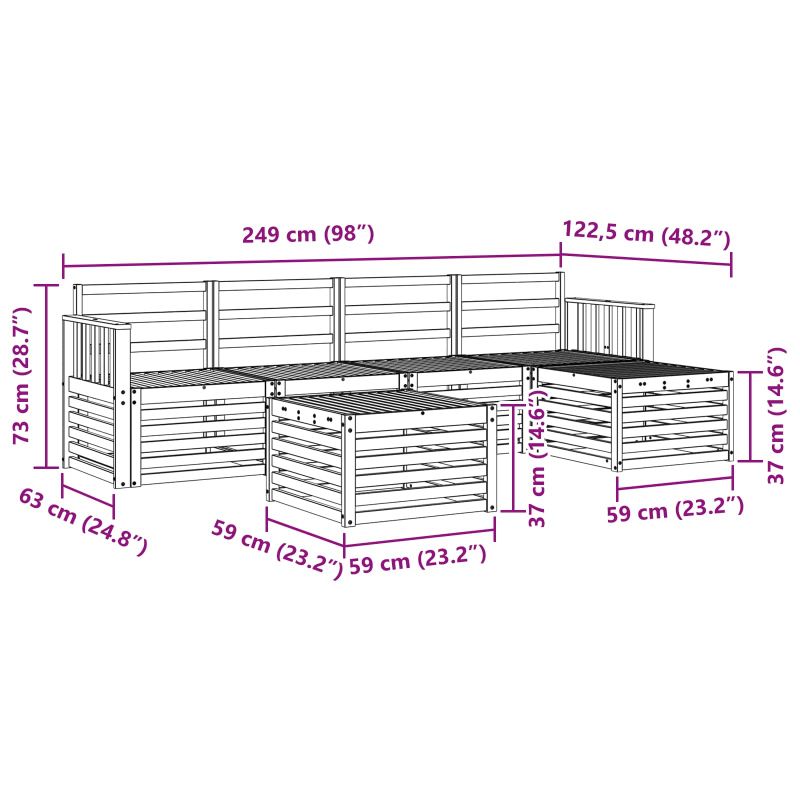• 4 x Среден диван: 63 x 59 x 73 см (Д x Ш x В)