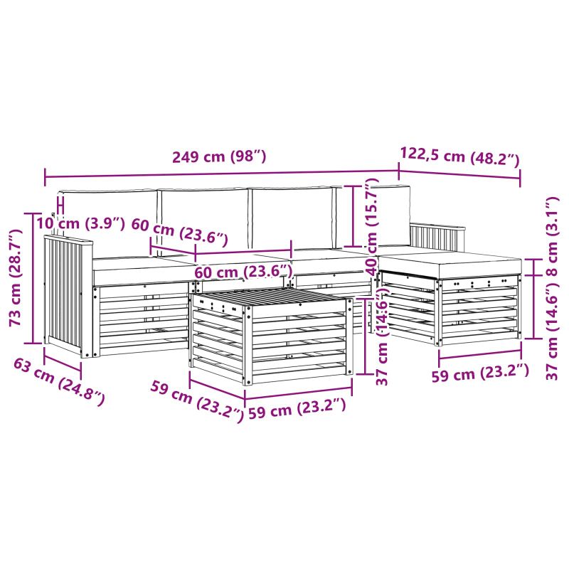 Този комплект за открито съчетава стил и удобство, създавайки идеален акцент за всяка градина или тераса. С модерен дизайн, чисти линии и минималистични детайли, той добавя елегантен вид и е чудесен за социални срещи на открито. Изработен от масивна акациева дървесина, комплектът предлага дълготрайност и привлекателност, което го прави идеален за почивка на открито. Устойчиво акациево дърво: Този комплект е изработен от здрава акациева дървесина, която е устойчива на неблагоприятни условия. Силната конструкция осигурява стабилност, а топлият цвят придава чар на всяка градина или тераса. Защита от времето: Лакираната повърхност предлага допълнителна защита от слънце, дъжд и други условия. Полираното покритие запазва външния вид и функционалността, гарантирайки дълготрайност за вашето пространство. Дизайн и компоненти: Всеки детайл, от подлакътниците до облегалките, съчетава стил и комфорт. Поддръжката осигурява допълнителен комфорт, докато целият дизайн е визуално стилен и подходящ за открити поводи. Удобство и адаптивност: Модулната структура позволява различни конфигурации, идеални за всякакви нужди. Перфектен за почивка, социални събирания или тихи моменти на четене, комплектът се настройва лесно за максимален комфорт. Лесна поддръжка: Поддържайте мебелите, като ги почиствате с влажна кърпа и избягвайте агресивни препарати. Редовната грижа помага за запазване на добрия вид и удължава живота на мебелите.
