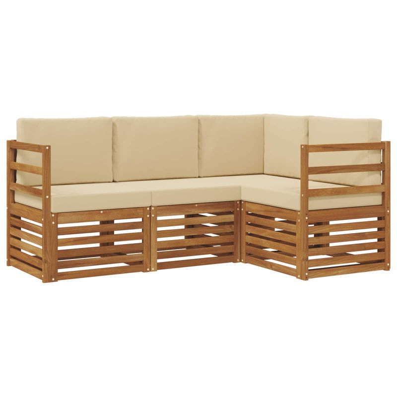 Комплекти дивани 4 pcs Натурален и Бежов Солидно акациево дърво
