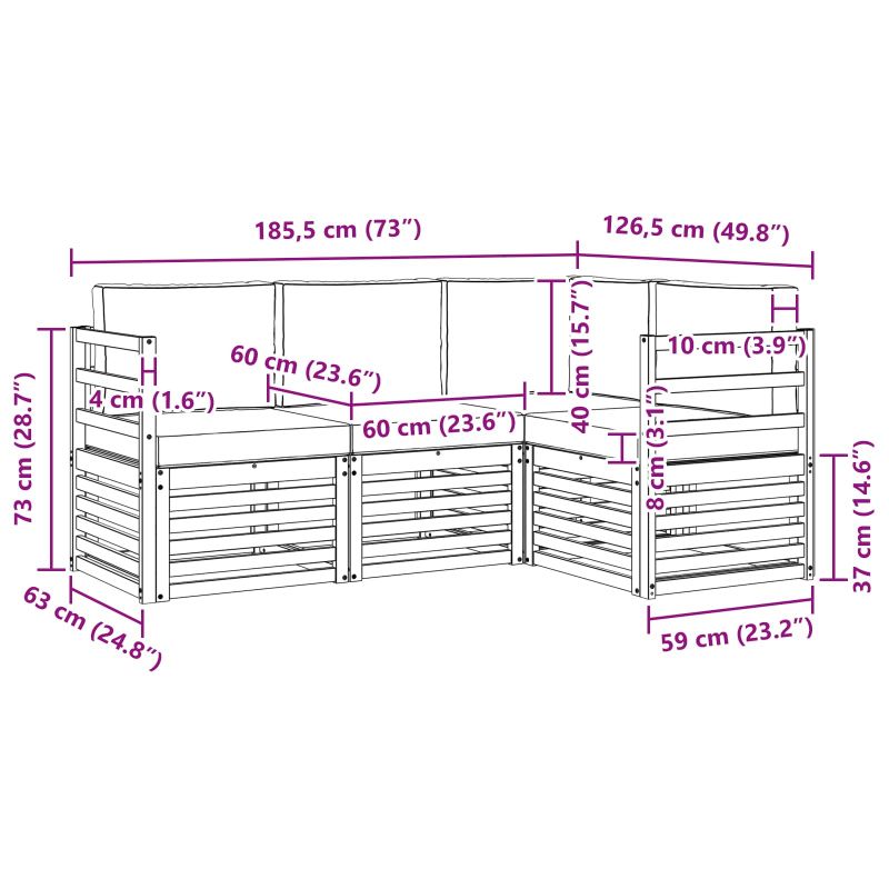 Този комплект за открито съчетава стил и функционалност, създавайки страхотен център за всяка градина или тераса. С модерния си дизайн, чисти линии и минимални детайли, той придава елегантност и е перфектен за релакс на открито. Направен е от масивна акациева дървесина, осигуряваща дълготрайна издръжливост и естетика. Издръжлива масивна акациева дървесина: Изработен от масивна акациева дървесина, този комплект мебели за открито е устойчив на времето и предоставя здраво сцепление и стилен вид. Устойчив на атмосферни условия: Лакираната повърхност осигурява защита от слънце и дъжд, като запазва външния вид и удължава живота на мебелите. Компоненти и дизайн: Всички части, от подлакътниците до облегалките, са проектирани за стил и удобство. Подкрепящите елементи предлагат допълнителен комфорт, а свързаният дизайн е визуално привлекателен. Комфорт и многофункционалност: Модулният дизайн позволява адаптивност към различни пространства и ситуации, идеален за релакс или социални събирания. Лесна поддръжка: Поддържайте мебелите свежи с влажна кърпа и избягвайте агресивни почистващи средства.