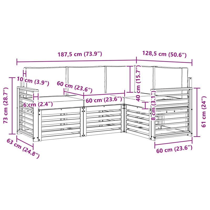 Този комплект за открито съчетава стил и функционалност, създавайки страхотен център за всяка градина или тераса. С модерния си дизайн, чисти линии и минимални детайли, той придава елегантност и е перфектен за релакс на открито. Направен е от масивна акациева дървесина, осигуряваща дълготрайна издръжливост и естетика. Издръжлива масивна акациева дървесина: Изработен от масивна акациева дървесина, този комплект мебели за открито е устойчив на времето и предоставя здраво сцепление и стилен вид. Устойчив на атмосферни условия: Лакираната повърхност осигурява защита от слънце и дъжд, като запазва външния вид и удължава живота на мебелите. Компоненти и дизайн: Всички части, от подлакътниците до облегалките, са проектирани за стил и удобство. Подкрепящите елементи предлагат допълнителен комфорт, а свързаният дизайн е визуално привлекателен. Комфорт и многофункционалност: Модулният дизайн позволява адаптивност към различни пространства и ситуации, идеален за релакс или социални събирания. Лесна поддръжка: Поддържайте мебелите свежи с влажна кърпа и избягвайте агресивни почистващи средства.