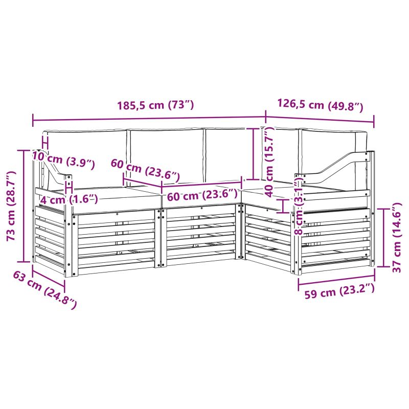 Този комплект за открито съчетава стил и функционалност, създавайки страхотен център за всяка градина или тераса. С модерния си дизайн, чисти линии и минимални детайли, той придава елегантност и е перфектен за релакс на открито. Направен е от масивна акациева дървесина, осигуряваща дълготрайна издръжливост и естетика. Издръжлива масивна акациева дървесина: Изработен от масивна акациева дървесина, този комплект мебели за открито е устойчив на времето и предоставя здраво сцепление и стилен вид. Устойчив на атмосферни условия: Лакираната повърхност осигурява защита от слънце и дъжд, като запазва външния вид и удължава живота на мебелите. Компоненти и дизайн: Всички части, от подлакътниците до облегалките, са проектирани за стил и удобство. Подкрепящите елементи предлагат допълнителен комфорт, а свързаният дизайн е визуално привлекателен. Комфорт и многофункционалност: Модулният дизайн позволява адаптивност към различни пространства и ситуации, идеален за релакс или социални събирания. Лесна поддръжка: Поддържайте мебелите свежи с влажна кърпа и избягвайте агресивни почистващи средства.