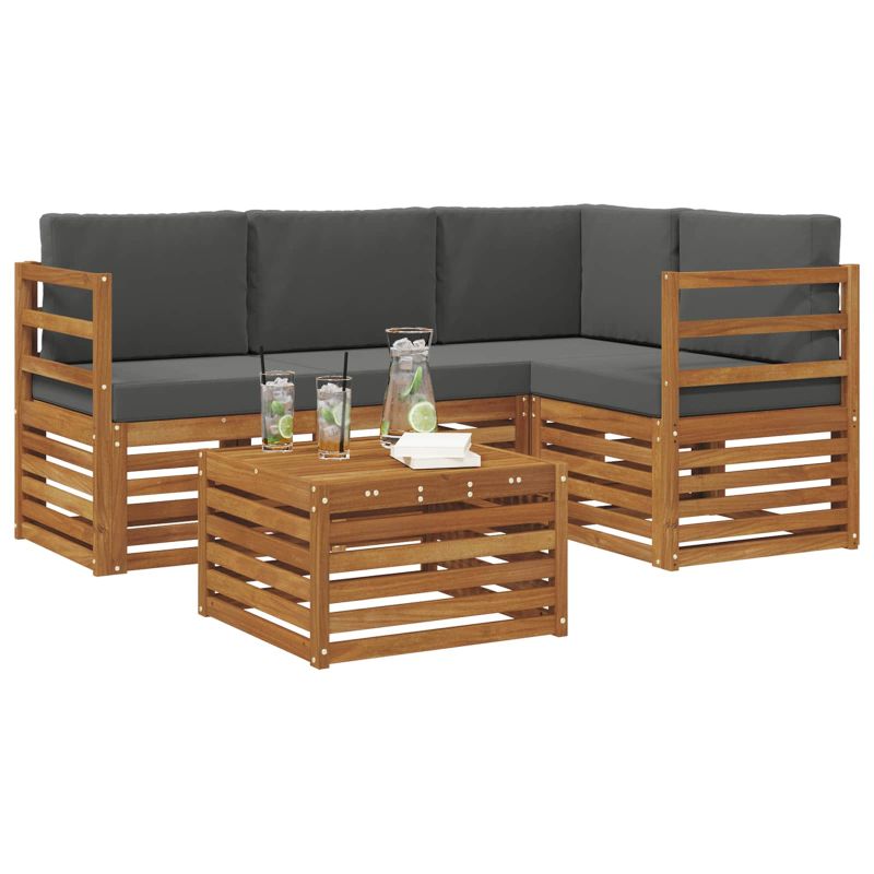 Този комплект ъглови дивани е стилно съчетание от модерен дизайн и практичност, което внесе свежест и уют във всяка градина, патио, до басейна или задния двор. Направен от масивна акациева дървесина с красив кафяв цвят, той създава топла и приятна атмосфера. Модулният дизайн ви позволява да пренареждате местата по ваш вкус, каквито и поводи да имате - от интимни събирания до весели партита. Материал: Комплектът е направен от здрава акациева дървесина, което го прави идеален за градински партита, до басейна или за барбекюта в двора. Акацията е известна с богатата си текстура и устойчивост, което я прави идеален избор за открито. Модулна конфигурация: Можете да пренаредите ъгловия диван по различни начини, за да отговаря на пространството и нуждите ви. Независимо дали искате да оформите дълга конструкция или уютни кътчета, гъвкавостта го прави удобен за ползване. Ръкохватки: Всеки диван е с удобни ръкохватки от акация, които не само добавят стил, но и предлагат комфорт за дълго време седене. Независимо дали четете книга или просто прекарвате време с приятели, те ви помагат да се отпуснете. Дизайнерски детайли: Модерните слатинени повърхности добавят естетическа стойност. Простотата на дизайна прави комплекта идеален за всякакви открити пространства и осигурява добър въздушен поток, особено в горещите дни. Поддръжка: Супер лесно поддръжка – просто избърсвайте с влажна кърпа, за да запазите ярките цветове. Това е наистина практично решение за вашата градина, което освен стилно, е и лесно за поддържане.