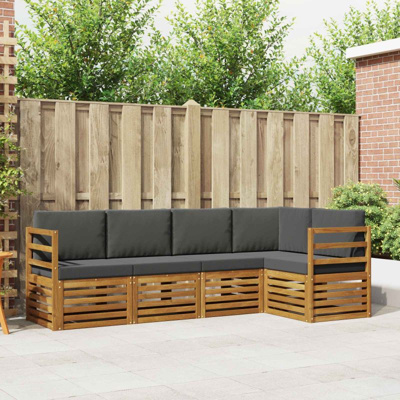 Този комплект градински мебели съчетава стил и практичност, създавайки впечатляваща централна част за градината или терасата. С модерния си дизайн, базиран на чисти линии и минимални детайли, той внася елегантност и същевременно предлага удобство за открита релаксация и социални събирания. Изработен от масивна акациева дървесина, комплектът осигурява дълготрайност и атрактивен вид, идеален за хора, търсещи и стил и функционалност в градинските мебели. Издръжливи масивни акациеви дъски: Направен от масивна акациева дървесина, този комплект градински мебели е известен с издръжливостта си и устойчивостта на различни условия на открито. Здравата конструкция осигурява стабилност, а топлият естествен цвят добавя чар на всяка градина или тераса. Устойчив на времето дизайн: Комплектът с лакирана повърхност предлага допълнителна защита от слънце и дъжд. Полираният завършек запазва както външния вид, така и функцията, осигурявайки дълготрайност за вашата градина или тераса. Дизайн с внимание към детайла: Всеки елемент, от подлакътниците до гръбниците, е проектиран за стил и удобство. Поддържащите елементи добавят допълнителен комфорт, а координираният дизайн гарантира визуална хармония, подходяща за всякакви открити поводи. Комфорт и универсалност: Модулният дизайн позволява различни конфигурации за различни нужди. Подходящ е за излежаване, социални срещи или тихо четене, комплектът лесно се адаптира към откритите условия, максимизирайки удобството. Лесна грижа: За да поддържате мебелите в добро състояние, просто избърсвайте с влажна кърпа и избягвайте силни почистващи средства. Редовната поддръжка подобрява вида и удължава живота на мебелите.