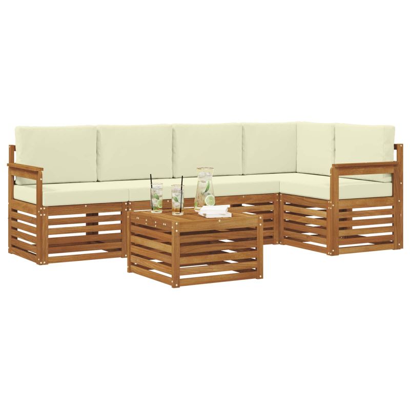 Комплекти дивани 6 pcs Натурален и Крема Солидно акациево дърво