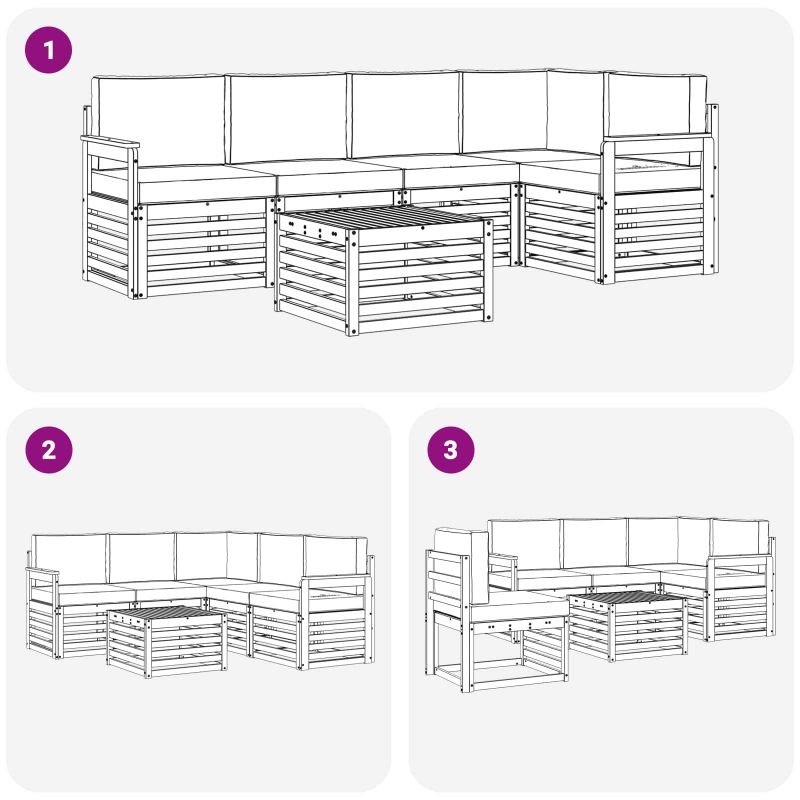 Комплектът за открито съчетава стил и практичност, създавайки център на вниманието на всяка градина или тераса. Неговият модерен дизайн с чисти линии добавя елегантност, а материалите осигуряват дълготрайна красота и устойчивост. Издръжлив масивен акациев дървен материал: Този комплект от масивна акациева дървесина е устойчив на климатични условия и предлага надеждност. Красивият естествен нюанс придава стил на всяка градина. Дизайн, устойчив на време: Лакираната повърхност осигурява защита срещу слънце и дъжд, запазвайки мебелите привлекателни и функционални за дълго. Компоненти и дизайн: Всеки детайл е проектиран за комфорт и стил, а дизайна осигурява визуално единство, подходящо за всякакви събирания. Комфорт и многофункционалност: Модулният дизайн позволява различни конфигурации, идеални за всякакви нужди - от релаксация до социални вечери. Лесна поддръжка: Чистете веднъж седмично с влажна кърпа, за да поддържате външния вид на мебелите. Устойчивият им материал намалява нуждата от честа поддръжка.