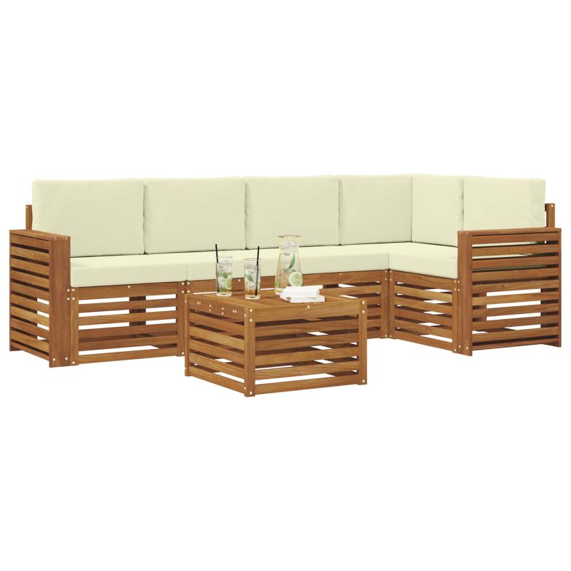 Комплекти дивани 6 pcs Натурален и Крема Солидно акациево дърво