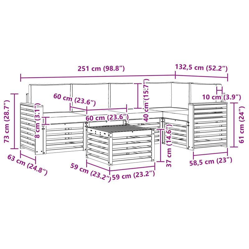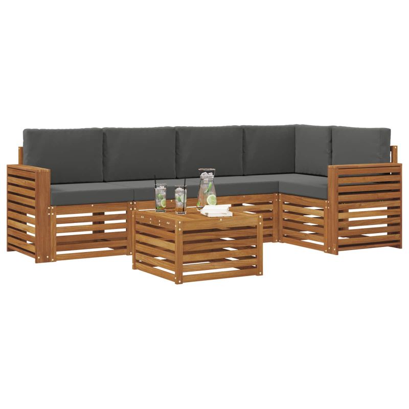 Комплектът за открито съчетава стил и практичност, създавайки център на вниманието на всяка градина или тераса. Неговият модерен дизайн с чисти линии добавя елегантност, а материалите осигуряват дълготрайна красота и устойчивост. Издръжлив масивен акациев дървен материал: Този комплект от масивна акациева дървесина е устойчив на климатични условия и предлага надеждност. Красивият естествен нюанс придава стил на всяка градина. Дизайн, устойчив на време: Лакираната повърхност осигурява защита срещу слънце и дъжд, запазвайки мебелите привлекателни и функционални за дълго. Компоненти и дизайн: Всеки детайл е проектиран за комфорт и стил, а дизайна осигурява визуално единство, подходящо за всякакви събирания. Комфорт и многофункционалност: Модулният дизайн позволява различни конфигурации, идеални за всякакви нужди - от релаксация до социални вечери. Лесна поддръжка: Чистете веднъж седмично с влажна кърпа, за да поддържате външния вид на мебелите. Устойчивият им материал намалява нуждата от честа поддръжка.