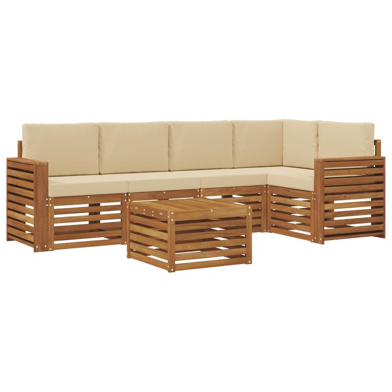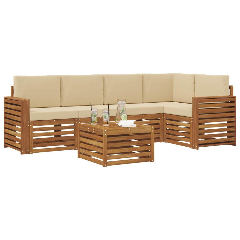 Комплекти дивани 6 pcs Натурален и Бежов Солидно акациево дърво