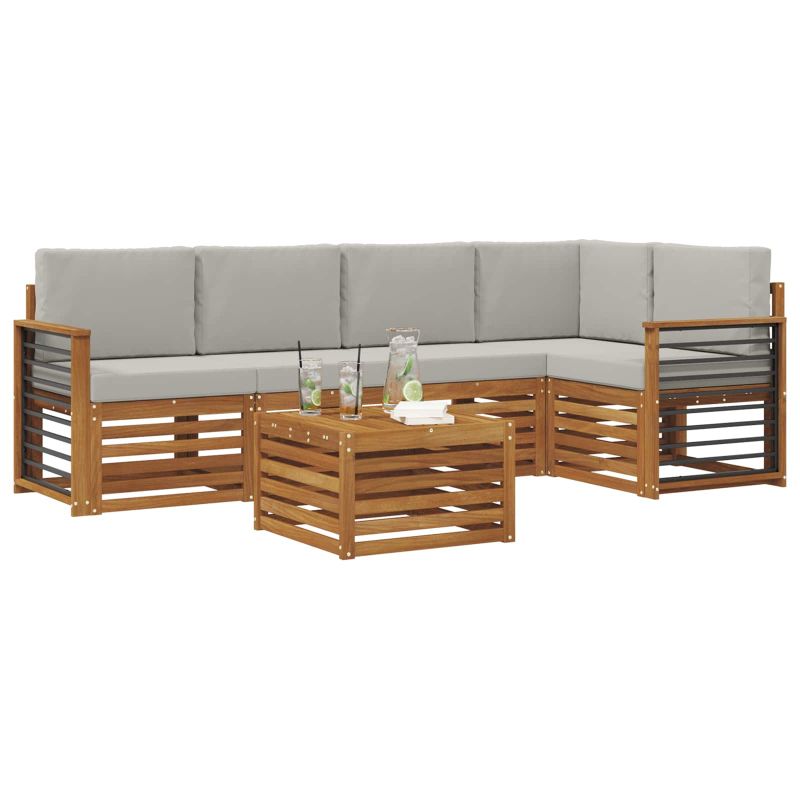 Комплектът за открито съчетава стил и практичност, създавайки център на вниманието на всяка градина или тераса. Неговият модерен дизайн с чисти линии добавя елегантност, а материалите осигуряват дълготрайна красота и устойчивост. Издръжлив масивен акациев дървен материал: Този комплект от масивна акациева дървесина е устойчив на климатични условия и предлага надеждност. Красивият естествен нюанс придава стил на всяка градина. Дизайн, устойчив на време: Лакираната повърхност осигурява защита срещу слънце и дъжд, запазвайки мебелите привлекателни и функционални за дълго. Компоненти и дизайн: Всеки детайл е проектиран за комфорт и стил, а дизайна осигурява визуално единство, подходящо за всякакви събирания. Комфорт и многофункционалност: Модулният дизайн позволява различни конфигурации, идеални за всякакви нужди - от релаксация до социални вечери. Лесна поддръжка: Чистете веднъж седмично с влажна кърпа, за да поддържате външния вид на мебелите. Устойчивият им материал намалява нуждата от честа поддръжка.