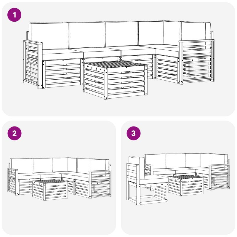 Комплектът за открито съчетава стил и практичност, създавайки център на вниманието на всяка градина или тераса. Неговият модерен дизайн с чисти линии добавя елегантност, а материалите осигуряват дълготрайна красота и устойчивост. Издръжлив масивен акациев дървен материал: Този комплект от масивна акациева дървесина е устойчив на климатични условия и предлага надеждност. Красивият естествен нюанс придава стил на всяка градина. Дизайн, устойчив на време: Лакираната повърхност осигурява защита срещу слънце и дъжд, запазвайки мебелите привлекателни и функционални за дълго. Компоненти и дизайн: Всеки детайл е проектиран за комфорт и стил, а дизайна осигурява визуално единство, подходящо за всякакви събирания. Комфорт и многофункционалност: Модулният дизайн позволява различни конфигурации, идеални за всякакви нужди - от релаксация до социални вечери. Лесна поддръжка: Чистете веднъж седмично с влажна кърпа, за да поддържате външния вид на мебелите. Устойчивият им материал намалява нуждата от честа поддръжка.