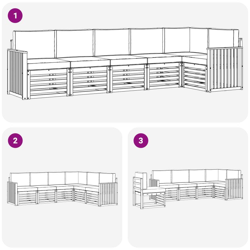 Комплектът за открито съчетава стил и функция, създавайки впечатляваща централна точка за всяка градина или тераса. С модерен дизайн, чисти линии и минимални детайли, той предлага елегантност, подкрепяйки откритата релаксация и социалните събирания. Направен изцяло от масивна акациева дървесина, този комплект напълно отговаря на нуждата от издръжливост и визуална привлекателност, идеален за тези, които търсят практичност и стил в откритата мебелировка. Издръжлива масивна акациева дървесина: Направен от масивна акациева дървесина, този комплект градински мебели е известен със своята здравина и устойчивост на влиянията на времето. Здравата конструкция осигурява надеждна основа и дълготрайност, а топлият естествен цвят заема привлекателното място в градината или на терасата. Устойчив на времето дизайн: Мебелите за открито имат лакирана повърхност, която осигурява защита от слънце, дъжд и неблагоприятни условия. Полираното покритие помага да се запази както визуалния, така и функционалния му вид, осигурявайки дълготрайна издръжливост за вашата градина, тераса или двор. Компоненти и дизайн: Всеки елемент, от подлакътниците до облегалките, е проектиран с внимание към стил и комфорт. Основните характеристики осигуряват допълнителен комфорт, а последователният дизайн гарантира визуална хармония, подходяща за различни открити поводи. Комфорт и многофункционалност: Модулният дизайн позволява гъвкави конфигурации, които да отговорят на различни нужди. Перфектен за релаксация или социални събирания, комплектът се адаптира към всяко открито пространство, максимизирайки комфорта и функционалността. Лесна поддръжка: За да запазите мебелите в добро състояние, просто ги почиствайте с влажна кърпа и избягвайте агресивни почистващи средства. Редовната поддръжка запазва външния вид и удължава живота на мебелите.