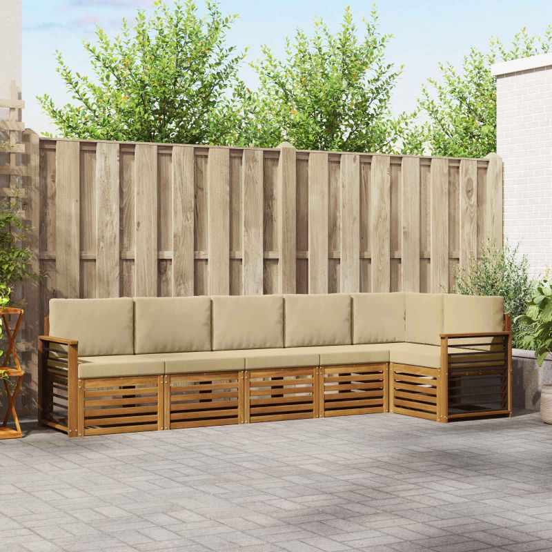 Начало Мебели Комплекти мебели Комплекти дивани 6 pcs Натурален и Бежов Солидно акациево дърво