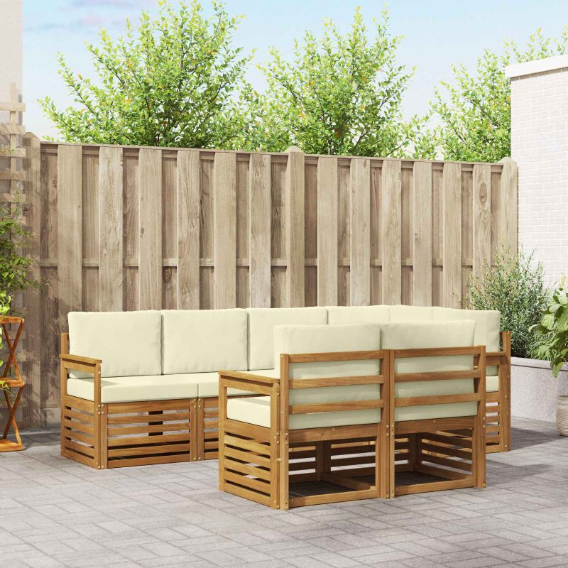 Комплекти дивани 7 pcs Натурален и Крема Солидно акациево дърво