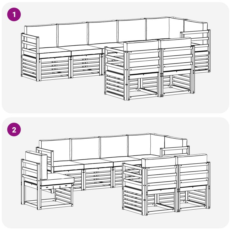 Комплектът за външни мебели съчетава стил и функционалност, създавайки впечатляваща централна част за всяка градина или тераса. С модерен дизайн, чисти линии и минималистичен подход, той добавя елегантност и същевременно предлага комфорт за открито и социални събирания. Направен от масивно акациево дърво, комплектът осигурява издръжливост и привлекателен вид, което го прави идеален избор за тези, които искат практични и стилни решения за външната мебелировка. Издръжлива масивна акациева дървесина: Комплектът е направен от масивно акациево дърво, познато със своята вечна издръжливост на открито. Неговата здрава конструкция предлага надеждна поддръжка и стабилност, докато топлия естествен цвят добавя чар на градината или терасата. Дизайн устоичив на времето: Мебелите разполагат с защитно лакирано покритие, което предлага допълнителна защита срещу слънце, кратки дъждове и външни условия. Лакираното покритие запазва визията и функциите, осигурявайки дълготрайна издръжливост за вашето открито. Компоненти и дизайн: Всяка част, от подлакътниците до облегалките, е проектирана с мисъл за стил и функция. Комфортните функции предлагат допълнителен уют, докато сплотеният дизайн осигурява визуално хомогенен комплект, подходящ за различни външни поводи. Комфорт и многофункционалност: Модулния дизайн позволява гъвкави конфигурации, които отговарят на различни пространства и нужди. Перфектен за релакс, социални събирания или спокойни моменти на четене, комплектът успешно се адаптира към всяка външна среда, увеличавайки комфорта. Лесна грижа и поддръжка: За да запазите мебелите в добро състояние, просто ги почиствайте с влажна кърпа и избягвайте агресивни препарати. Редовната поддръжка увеличава продължителността на живота и поддържа красивия вид на мебелите.