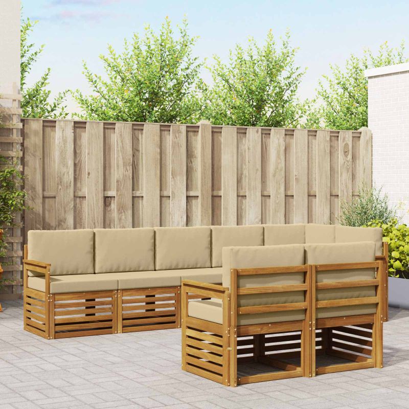 Комплекти дивани 8 pcs Натурален и Бежов Солидно акациево дърво