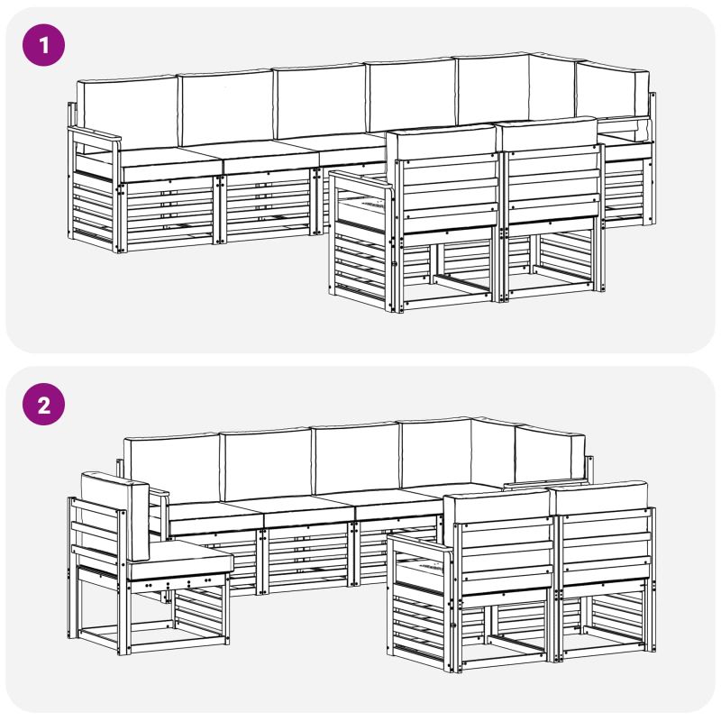 Комплектът за външни мебели съчетава стил и функционалност, създавайки впечатляваща централна част за всяка градина или тераса. С модерен дизайн, чисти линии и минималистичен подход, той добавя елегантност и същевременно предлага комфорт за открито и социални събирания. Направен от масивно акациево дърво, комплектът осигурява издръжливост и привлекателен вид, което го прави идеален избор за тези, които искат практични и стилни решения за външната мебелировка. Издръжлива масивна акациева дървесина: Комплектът е направен от масивно акациево дърво, познато със своята вечна издръжливост на открито. Неговата здрава конструкция предлага надеждна поддръжка и стабилност, докато топлия естествен цвят добавя чар на градината или терасата. Дизайн устоичив на времето: Мебелите разполагат с защитно лакирано покритие, което предлага допълнителна защита срещу слънце, кратки дъждове и външни условия. Лакираното покритие запазва визията и функциите, осигурявайки дълготрайна издръжливост за вашето открито. Компоненти и дизайн: Всяка част, от подлакътниците до облегалките, е проектирана с мисъл за стил и функция. Комфортните функции предлагат допълнителен уют, докато сплотеният дизайн осигурява визуално хомогенен комплект, подходящ за различни външни поводи. Комфорт и многофункционалност: Модулния дизайн позволява гъвкави конфигурации, които отговарят на различни пространства и нужди. Перфектен за релакс, социални събирания или спокойни моменти на четене, комплектът успешно се адаптира към всяка външна среда, увеличавайки комфорта. Лесна грижа и поддръжка: За да запазите мебелите в добро състояние, просто ги почиствайте с влажна кърпа и избягвайте агресивни препарати. Редовната поддръжка увеличава продължителността на живота и поддържа красивия вид на мебелите.