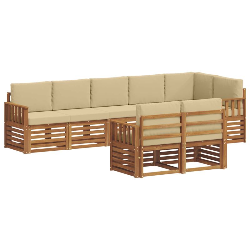 Комплекти дивани 8 pcs Натурален и Бежов Солидно акациево дърво