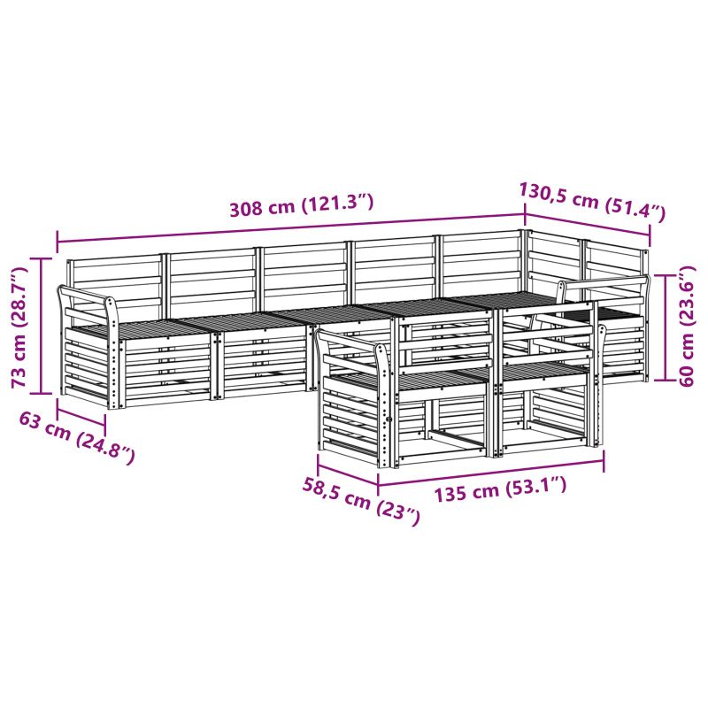 • 7 x Среден диван: 63 x 59 x 73 см (ДxШxВ)