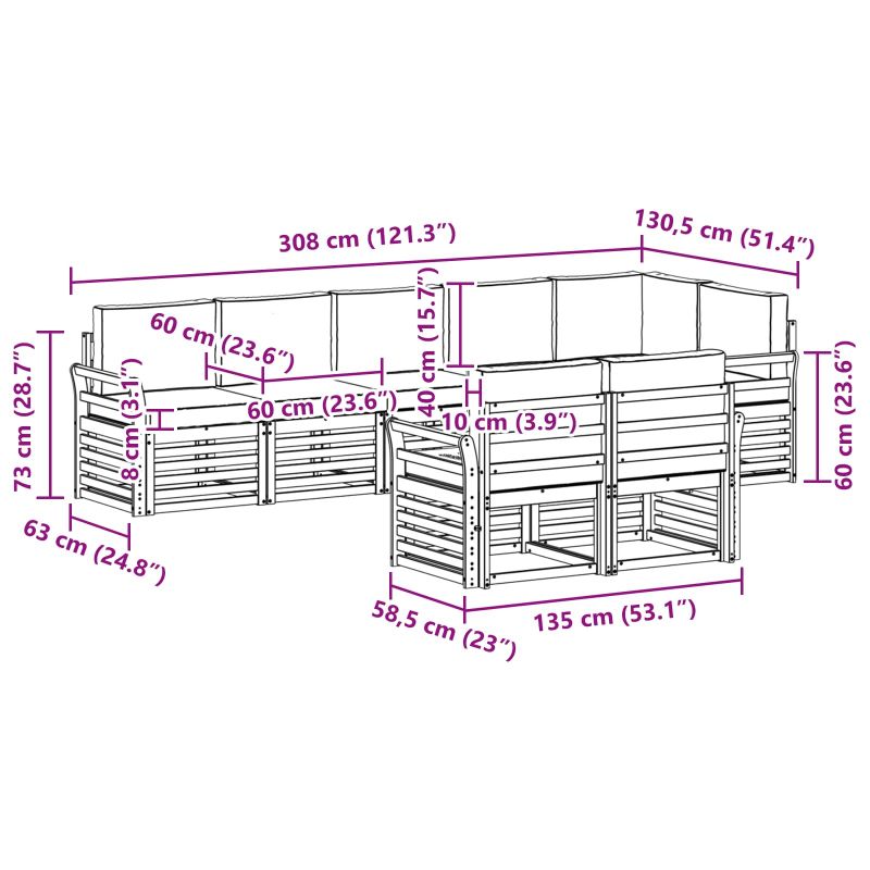 • 8 x Седалкови възглавници: 60 x 60 x 8 см (ДxШxВ)