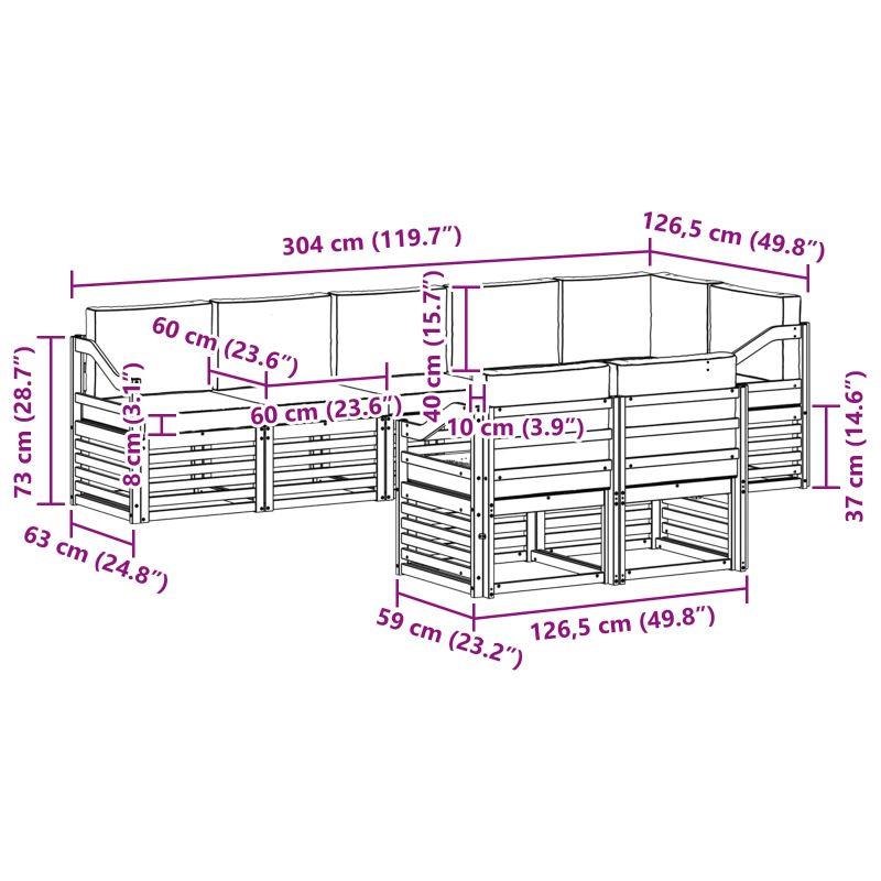 Комплектът за външни мебели съчетава стил и функционалност, създавайки впечатляваща централна част за всяка градина или тераса. С модерен дизайн, чисти линии и минималистичен подход, той добавя елегантност и същевременно предлага комфорт за открито и социални събирания. Направен от масивно акациево дърво, комплектът осигурява издръжливост и привлекателен вид, което го прави идеален избор за тези, които искат практични и стилни решения за външната мебелировка. Издръжлива масивна акациева дървесина: Комплектът е направен от масивно акациево дърво, познато със своята вечна издръжливост на открито. Неговата здрава конструкция предлага надеждна поддръжка и стабилност, докато топлия естествен цвят добавя чар на градината или терасата. Дизайн устоичив на времето: Мебелите разполагат с защитно лакирано покритие, което предлага допълнителна защита срещу слънце, кратки дъждове и външни условия. Лакираното покритие запазва визията и функциите, осигурявайки дълготрайна издръжливост за вашето открито. Компоненти и дизайн: Всяка част, от подлакътниците до облегалките, е проектирана с мисъл за стил и функция. Комфортните функции предлагат допълнителен уют, докато сплотеният дизайн осигурява визуално хомогенен комплект, подходящ за различни външни поводи. Комфорт и многофункционалност: Модулния дизайн позволява гъвкави конфигурации, които отговарят на различни пространства и нужди. Перфектен за релакс, социални събирания или спокойни моменти на четене, комплектът успешно се адаптира към всяка външна среда, увеличавайки комфорта. Лесна грижа и поддръжка: За да запазите мебелите в добро състояние, просто ги почиствайте с влажна кърпа и избягвайте агресивни препарати. Редовната поддръжка увеличава продължителността на живота и поддържа красивия вид на мебелите.
