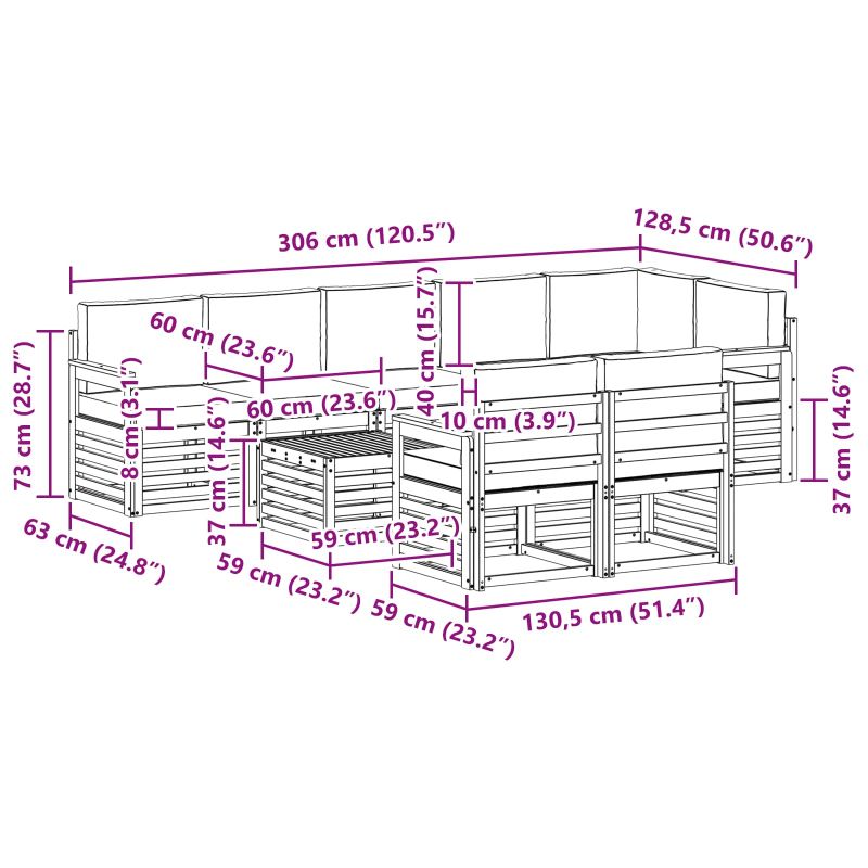 Този секционен диван е модерно решение за вашата градина, патио или басейн. Изработен е от красиво кафяво акациево дърво, което придава топлина и шик. Компонентите могат да се пренареждат, за да паснат на вашето пространство, така че да получите идеалната настройка за всякакви поводи. Издръжлива акациева дървесина: Това е не просто стил - диванът е от солидно акациево дърво, което значи, че ще ви служи дълго. Акациевата дървесина е специално направена, за да устои на времето, така че да изглежда винаги добре. Модулен дизайн: Можете лесно да свържете и пренаредите компонентите, за да получите тъкмо нужния вид. Гъвкавостта му го прави идеален за всяка ситуация. Лесна поддръжка: С прекрасна текстура и шарка на летви, поддръжката е супер проста. Водоустойчивото дърво позволява само с бързо избърсване с влажна кърпа да изглежда добре. Модерен стил: С изчистени линии и минималистичен дизайн, този диван внася стил и полезност в пространството. Простотата на дизайна му позволява да се комбинира с всякакви декори. Функционалност и дизайн: Шарката на летви не само придава визуален ефект, но също така помага за бързо изсъхване след дъжд, което го прави удобен за ползване.
