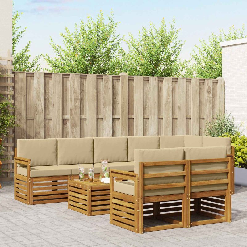 Комплекти дивани 9 pcs Натурален и Бежов Солидно акациево дърво