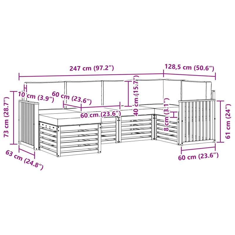 • 4 x среден диван: 63 x 59 x 73 см (ШхДхВ)