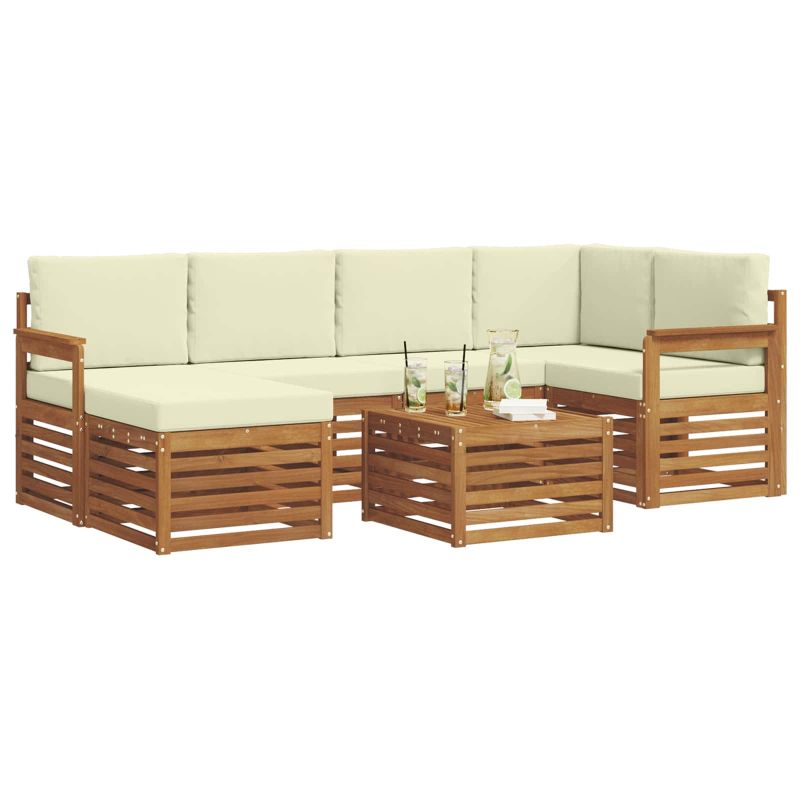 Комплекти дивани 7 pcs Натурален и Крема Солидно акациево дърво