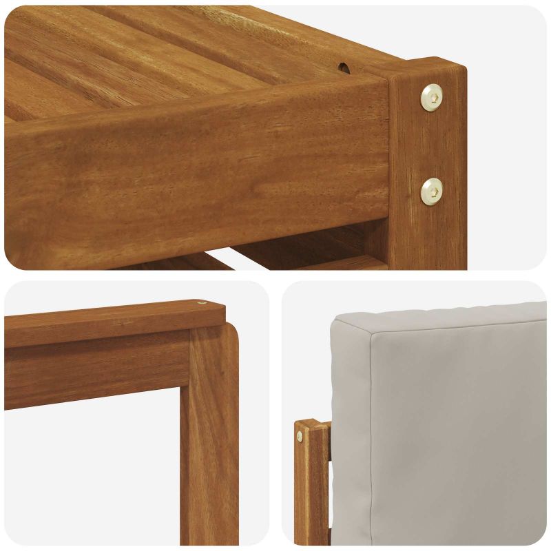Комплектът мебели за открито комбинира стил и практичност, създавайки централна точка за всяка градина или тераса. Със съвременния си дизайн, който включва ясни линии и минималистични детайли, той привнася елегантност и насърчава спокойствието и социалните събирания на открито. Направен е изцяло от акациева дървесина, което гарантира продължителна визия и здравина, идеален за тези, които ценят както практичността, така и стилния вид на откритите мебели. Издръжлива масивна акациева дървесина: Този комплект мебели за открито е известен със своята издръжливост на външни условия. Солидната му конструкция предлага стабилност, а топлият естествен нюанс обогатява всяко дворно пространство. Устойчив на времето дизайн: Лакираната повърхност осигурява допълнителна защита от слънце и дъжд, а полираното покритие запазва вида и функциите му за дълго. Компоненти и дизайн: Всеки детайл е замислен с акцент на стил и функционалност. Поддържащите елементи предлагат комфорт, а концепцията гарантира визуална хармония за разнообразни външни поводи. Комфорт и гъвкавост: Модулният дизайн осигурява адаптивност към различни пространства и нужди. Идеален за релаксация и социални събирания, той лесно се вписва в всяка външна среда. Лесна грижа и поддържане: Поддържайте мебелите в добро състояние с помощта на влажна кърпа и избягвайте абразивни средства. Редовната грижа запазва стила и увеличава живота на мебелите.