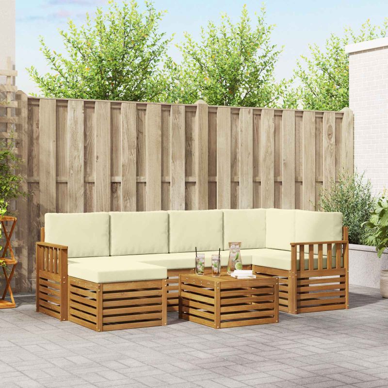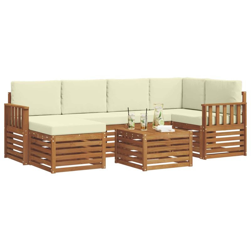 Комплекти дивани 7 pcs Натурален и Крема Солидно акациево дърво