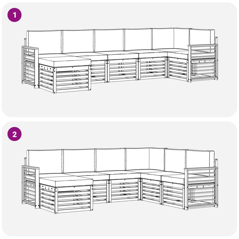 • 7 x седалкови възглавници: 60 x 60 x 8 см (ДxШxВ)