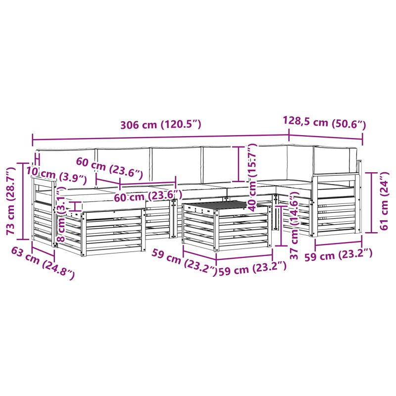 • 7 x Седалкови възглавници: 60 x 60 x 8 см (Д x Ш x В)