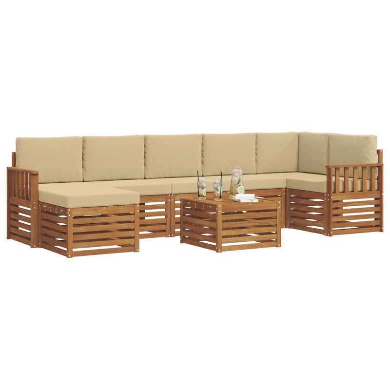 Комплекти дивани 8 pcs Натурален и Бежов Солидно акациево дърво