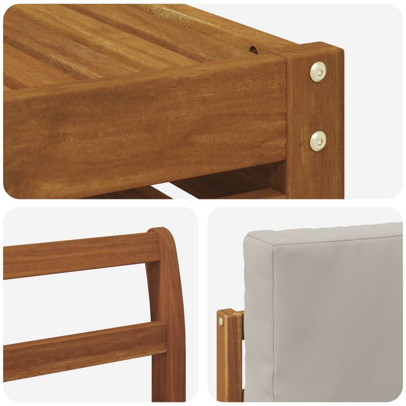 Комплектът за външни мебели съчетава стил и функция, създавайки перфектно допълнение за всяка градина или тераса. Модерният му дизайн, с изчистени линии и минималистични детайли, добавя елегантност и е идеален за релаксация на открито и социални събирания. Изработен изцяло от масивна акациева дървесина, комплектът осигурява здравина и дълготраен добър вид, което го прави идеален избор за практични и стилни мебели на открито. Издръжлив масивен акациев корпус: Направен е от масивна акациева дървесина, известен е със своята издръжливост и устойчивост на всякакви атмосферни условия. Здравата конструкция осигурява надеждност и дълготрайна стабилност, а топлият естествен цвят украсява всяка градина или тераса. Водоустойчив дизайн: Комплектът има лакирана повърхност, която добавя допълнителна защита срещу слънце, дъжд и всякакви условия на открито. Лъскавият завършек помага да запазиш вида и функционалността, осигурявайки дълготрайност за градината, терасата или двора ти. Компоненти и дизайн: Всеки детайл, от подлакътниците до облегалките, е проектиран с мисъл както за стил, така и за комфорт. Поддържащите елементи осигуряват допълнителен комфорт, а цялостният дизайн изглежда хармонично и подхожда на различни открити поводи. Комфорт и гъвкавост: Модулният дизайн позволява различни конфигурации, които отговарят на нуждите ти. Идеален е за релаксация, социални събирания или спокойно четене на книга, комплектът се адаптира лесно към всякакви открити пространства, повишавайки комфорта. Лесна поддръжка: За да поддържаш мебелите в добро състояние, просто избърсвай с влажна кърпа и избягвай агресивни почистващи средства. Редовната поддръжка помага да съхраниш външния вид и удължава живота на мебелите.