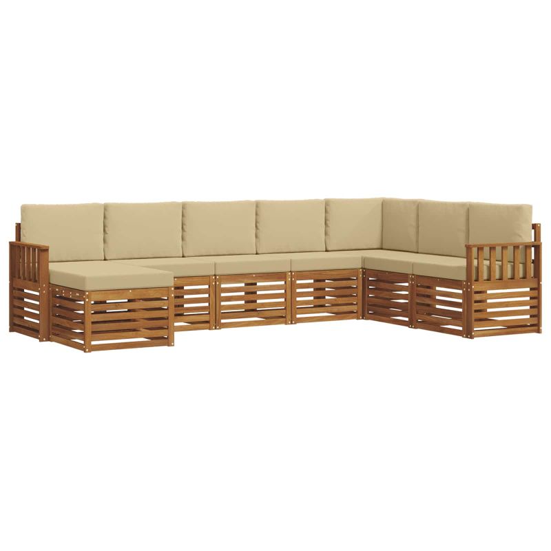 Комплекти дивани 8 pcs Натурален и Бежов Солидно акациево дърво