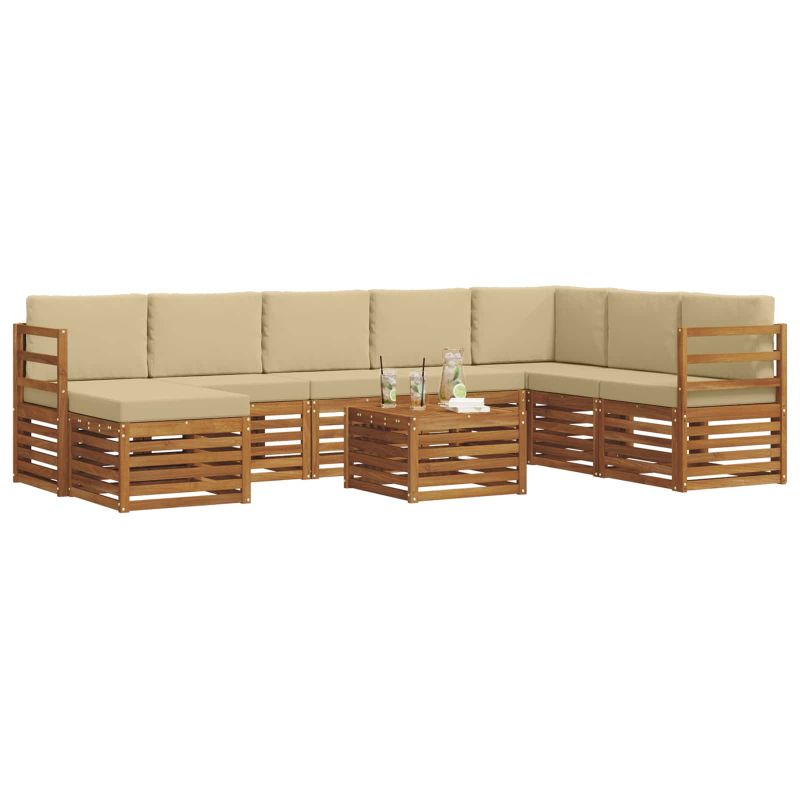 Комплекти дивани 9 pcs Натурален и Бежов Солидно акациево дърво
