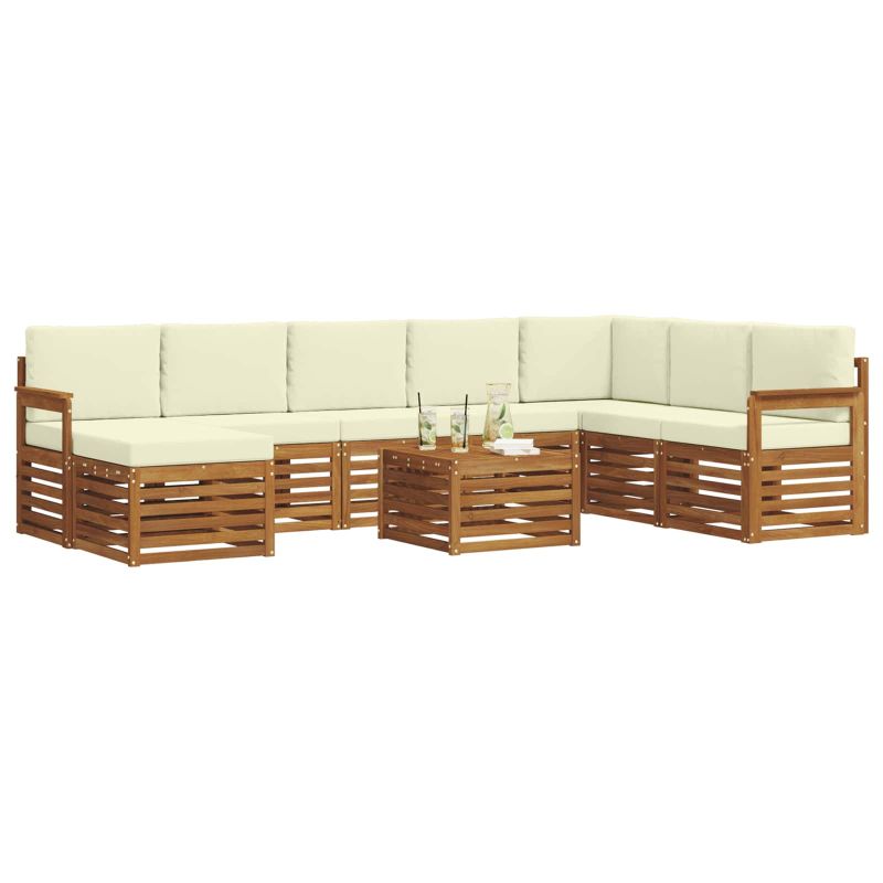 Комплекти дивани 9 pcs Натурален и Крема Солидно акациево дърво