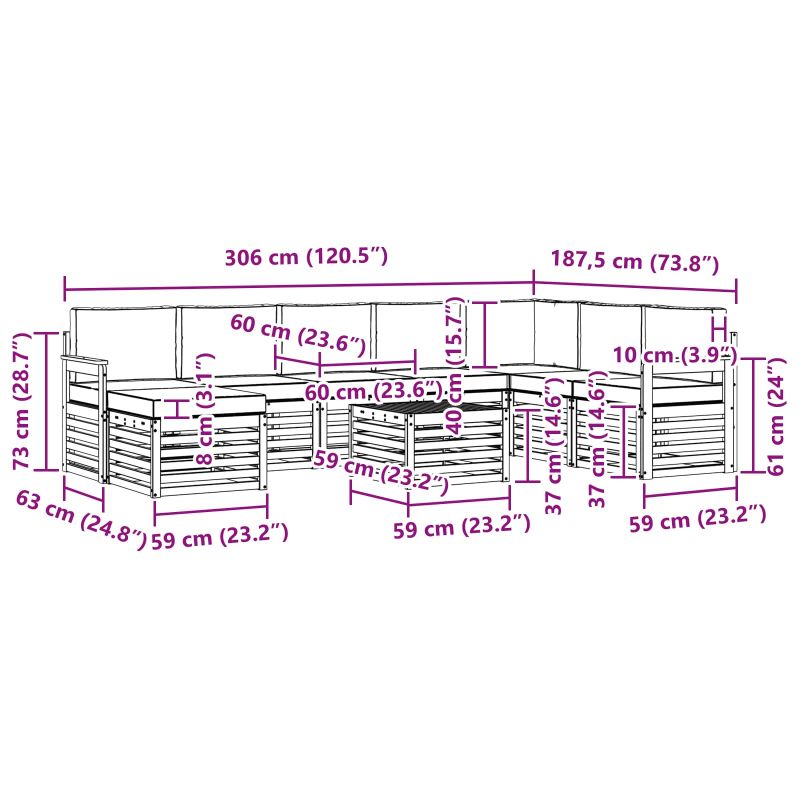 Комплектът за градински мебели съчетава стил и функционалност, създавайки удобен център на вниманието за всяка градина или тераса. Със своя модерен дизайн и чисти линии, добавя елегантност и поддържа социализацията на открито. Изработено от здраво акациево дърво, осигурява дълготрайна привлекателност и издръжливост, перфектен избор за тези, които искат практичност и стил. Издръжливо масивно акациево дърво: Този комплект за открито е здрав, устойчив на външни условия и перфектен за всяка градина или тераса. Устойчив на време дизайн: Лакираната повърхност осигурява допълнителна защита от слънце и дъжд, запазвайки външния вид и функцията. Компоненти и дизайн: Всички части са направени за стил и комфорт, създавайки визуално хармонично цялостно усещане. Комфорт и гъвкавост: Модуларният дизайн позволява различни конфигурации, идеални за релаксация или социални събирания. Лесна поддръжка: Просто почистете с влажна кърпа за да запазите мебелите в добро състояние.