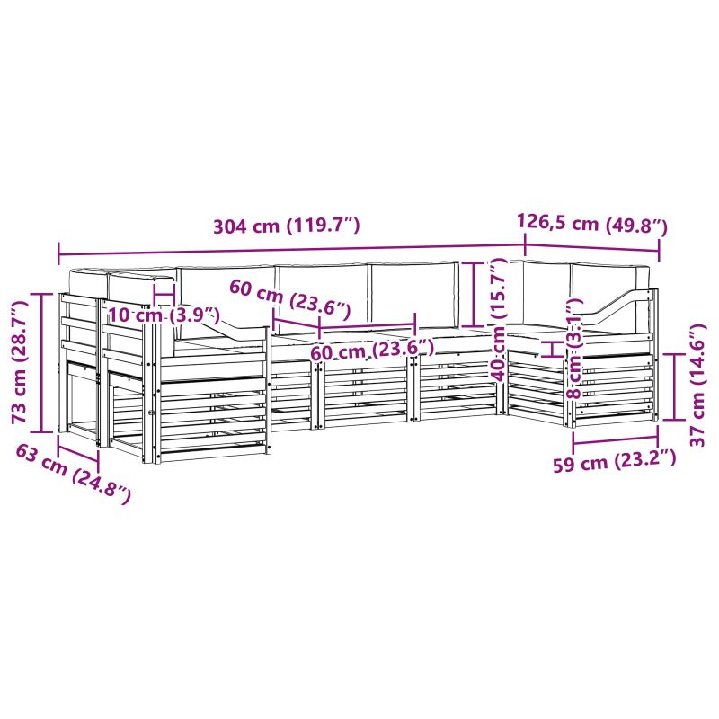 • 7 x седалкови възглавници: 60 x 60 x 8 см (ШxДxВ)
