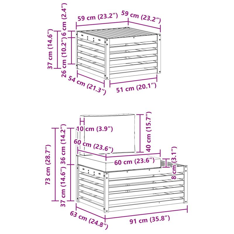 • 2 x Диван: 91 x 63 x 73 см (ДxШxВ)