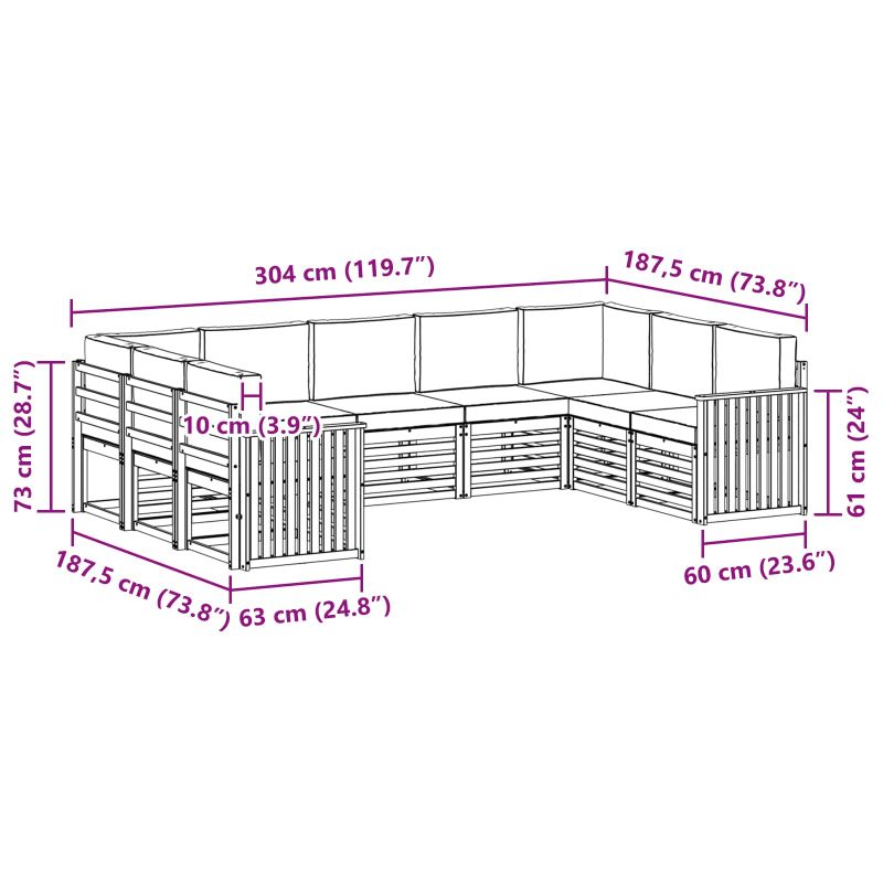• 9 x Седалкови възглавници: 60 x 60 x 8 см (ШxДxВ)