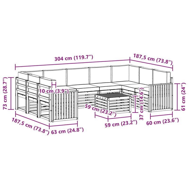 Комплектът мебели за открито комбинира стил и практичност, създавайки впечатляваща акцент в градината или на терасата. С модерния си дизайн с чисти линии и минимализъм, добавя елегантност и предоставя комфорт за открито и социални срещи. Направен от масивно акациево дърво, комплектът е издръжлив и визуално привлекателен, идеален за онези, които търсят както удобство, така и стил в откритите мебели. Издръжливо масивно дърво от акация: Този комплект мебели за открито, направен от масивно акациево дърво, е известен със своята дълготрайност и устойчивост на атмосферни условия. Здравата му конструкция предлага надеждна опора и дългосрочна стабилност, а топлият естествен цвят се вписва идеално във всяка градина или тераса. Дизайн с устойчивост на климатичните условия: С лакирана повърхност, комплектът мебели за открито предлага допълнителен слой защита от слънце, лек дъжд и атмосферни влияния. Полираното покритие запазва вида и функционалността, осигурявайки дълготрайност за вашата градина, тераса или задния двор. Компоненти и дизайн: Всяка част, от подлакътниците до облегалките, е проектирана за стил и удобство. Комфортните детайли осигуряват допълнителен уют, докато свързаният дизайн създава визуално хармоничен ансамбъл, подходящ за всякакви външни поводи. Комфорт и многофункционалност: Модулният дизайн позволява гъвкави конфигурации, които отговарят на различни пространства и нужди. Идеален е както за релаксация и социални събирания, така и за момент с книга, комплектът лесно се адаптира и максимизира комфорта и практичността. Лесна поддръжка: За да запазите мебелите в добро състояние, почиствайте повърхността с влажна кърпа и избягвайте агресивни почистващи средства. Редовната поддръжка помага да се запази външният вид и удължава живота на мебелите.