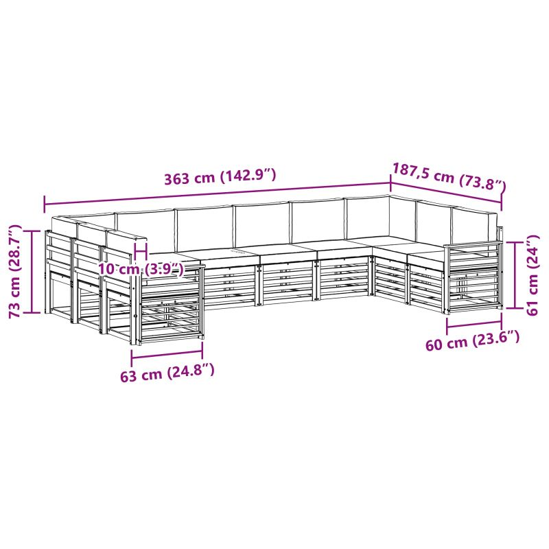 • 10 x седалкови възглавници: 60 x 60 x 8 см (ДxШxВ)