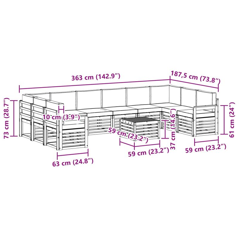 Този комплект за външни мебели съчетава стил с практичност, създавайки централна точка за всяка градина или тераса. С модерния си дизайн и чисти линии, той добавя елегантност и спомага за релаксация и социализиране навън. Направен изцяло от масивна акациева дървесина, комплектът е издръжлив и винаги изглежда добре. Много подходящ е за всякакви нужди. Масивна акациева дървесина: Изработен от масивна акациева дървесина, този комплект е много издръжлив и готов за всякакви метеорологични условия. Подходящ е за дългосрочна употреба, а естественият му цвят подхожда на всякаква градина. Устойчив на времето: Диванът има лакирана повърхност, която предпазва от слънце и дъжд. Полираното покритие помага за запазване на вида и устойчивостта. Стил и комфорт: Всеки детайл е замислен с внимание към стила и удобството. Проектиран е за допълнителен комфорт и визуална хармония. Гъвкавост: Модулният дизайн му позволява да се променя според нуждите. Идеален е за четене, срещи с приятели или просто за релаксация. Лесна поддръжка: Просто почиствай повърхността с влажна кърпа. Лесно е да се поддържа и да изглежда нов.