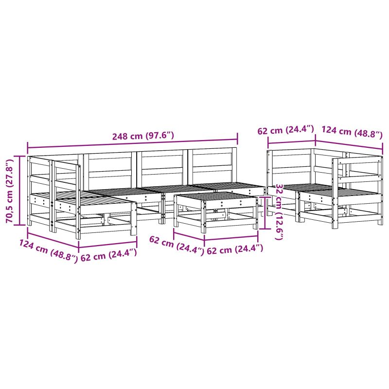 Модулният комплект за градинска мебел е стилно и адаптивно допълнение за вашите открити пространства. Съчетава модерен дизайн с комфорт и гъвкавост. Този комплект от дивани е идеален за преобразуване на вашата градина или тераса в уютно място. Позволява ви да релаксирате, да разговаряте или да похапвате с приятели. Модулният дизайн позволява лесно пренареждане, така че да отговаря на всякакви събирания. Солидна борова конструкция: Комплектът е от масивно борово дърво, устойчиво на атмосферни условия и с дълготрайна красота. Дизайн с рамка с ламели: Рамката осигурява стабилност и добър въздушен поток за комфорт. Просторен и функционален: Разполага с ъглови и средни дивани и маса, идеален за всякакви събирания на открито. Лесен монтаж: Сглобяването става бързо с обикновени инструменти, подходящо е дори за двама. Инструкции за поддръжка: Лесен за поддръжка, предпазвайте го от пряка слънчева светлина и внасяйте възглавниците при лошо време.