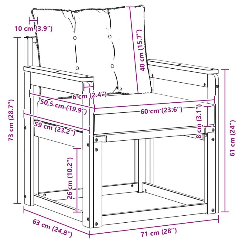 • 1 x Възглавница за сядане: 60 x 50,5 x 8 см (ДxШxВ)