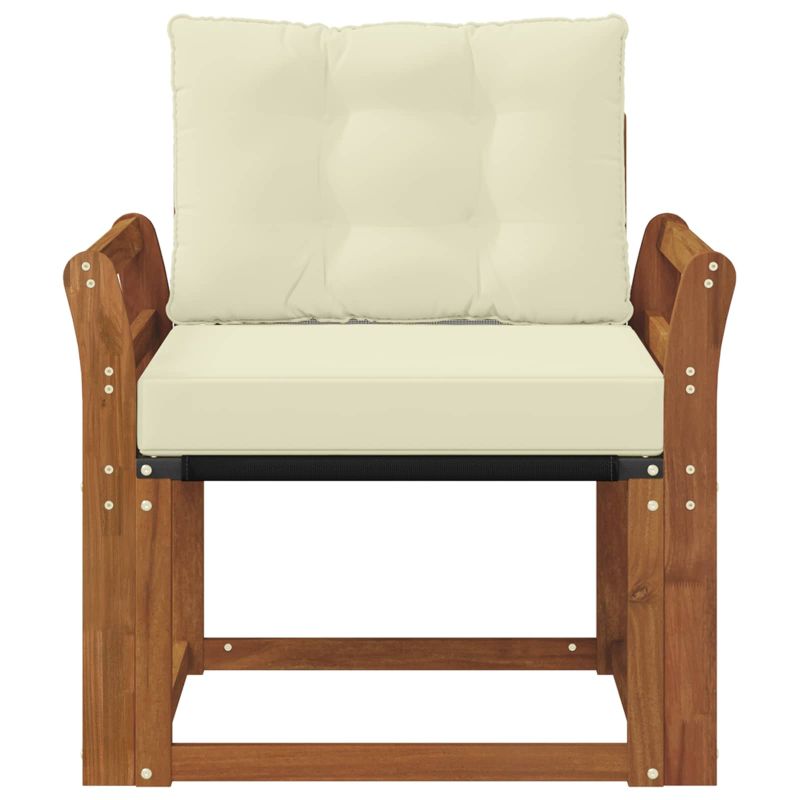 Този комплект мебели за външно ползване съчетава стил и удобство, придавайки елегантен вид на градината или терасата. Със своя модерен дизайн и минималистичен стил, той е идеален за отпочиване на открито и социални събирания. Направен е от масивна акациева дървесина, осигуряваща дълготрайност и приятно излъчване. Издръжлива масивна акациева дървесина: Този комплект е здрав и устойчив на външни условия, като предлага стабилна основа и добавя визуален чар на градината или терасата. Устойчиво на атмосферни условия проектиране: Лаковото покритие осигурява защита срещу слънце и малко дъжд, като помага за запазване на външния вид и функционалността. Компоненти и дизайн: Всеки детайл е проектиран както за стил, така и за комфорт. Съгласуваният дизайн изглежда визуално приятно на всяко открито събитие. Комфорт и универсалност: Модулната структура позволява различни конфигурации, удобни за всякакви поводи — от релаксиране до социални събирания. Лесна поддръжка: Просто почиствайте с влажна кърпа и избягвайте агресивни почистващи препарати, за да запазите мебелите в добро състояние.