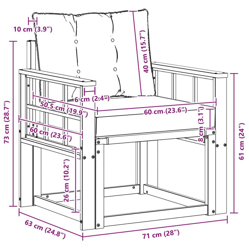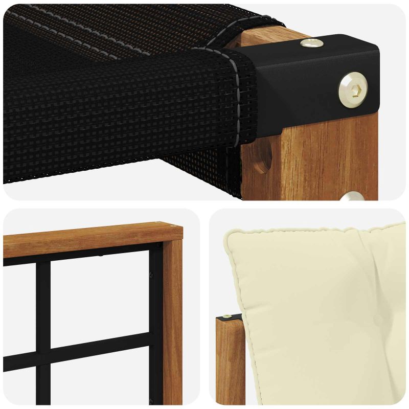 Този комплект мебели за външно ползване съчетава стил и удобство, придавайки елегантен вид на градината или терасата. Със своя модерен дизайн и минималистичен стил, той е идеален за отпочиване на открито и социални събирания. Направен е от масивна акациева дървесина, осигуряваща дълготрайност и приятно излъчване. Издръжлива масивна акациева дървесина: Този комплект е здрав и устойчив на външни условия, като предлага стабилна основа и добавя визуален чар на градината или терасата. Устойчиво на атмосферни условия проектиране: Лаковото покритие осигурява защита срещу слънце и малко дъжд, като помага за запазване на външния вид и функционалността. Компоненти и дизайн: Всеки детайл е проектиран както за стил, така и за комфорт. Съгласуваният дизайн изглежда визуално приятно на всяко открито събитие. Комфорт и универсалност: Модулната структура позволява различни конфигурации, удобни за всякакви поводи — от релаксиране до социални събирания. Лесна поддръжка: Просто почиствайте с влажна кърпа и избягвайте агресивни почистващи препарати, за да запазите мебелите в добро състояние.
