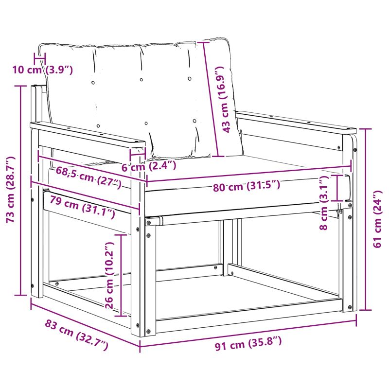 • 1 x Тапицерка за сядане: 80 x 68,5 x 8 см (ШxДxВ)